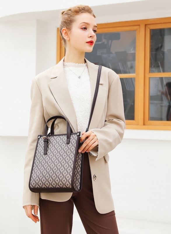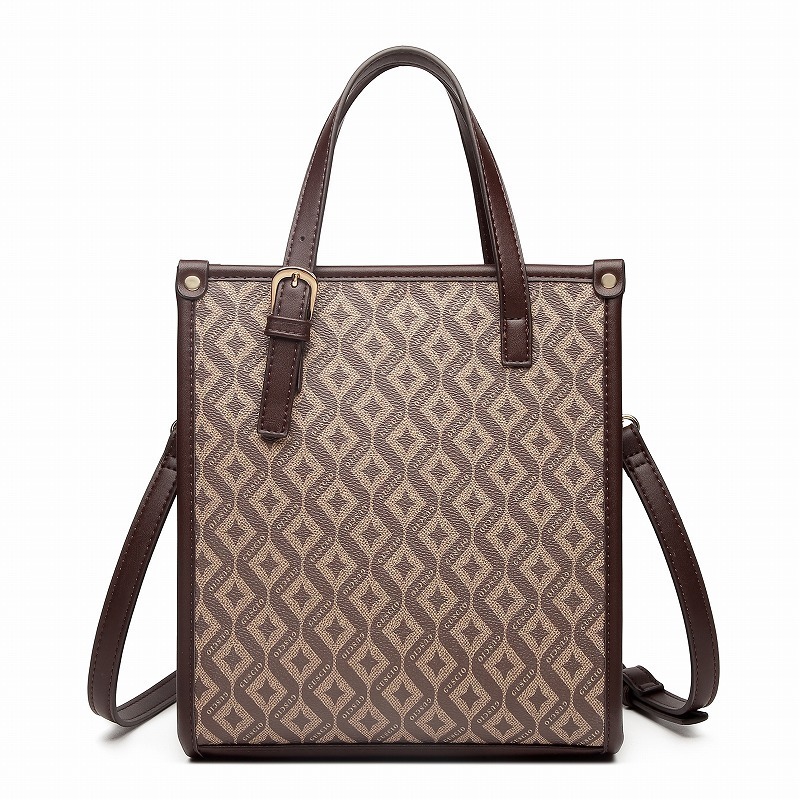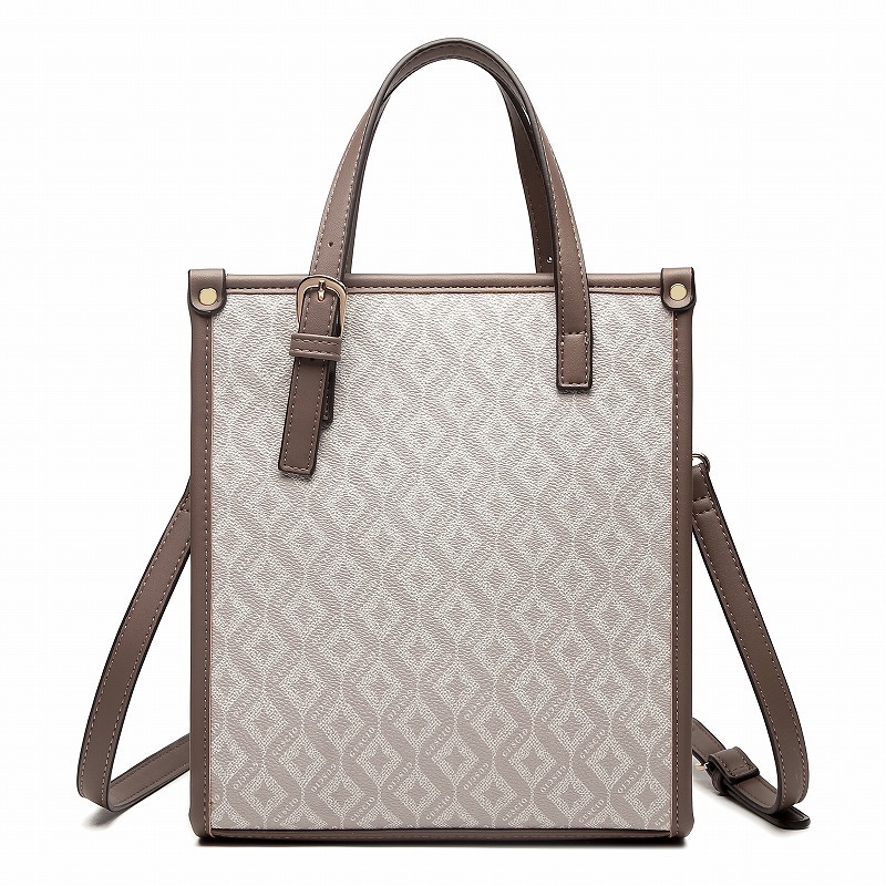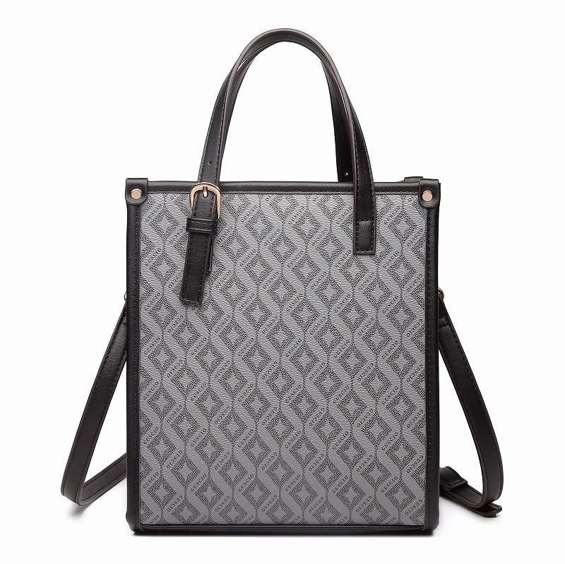 | 素材・成分:PVC、PUレザー 幅:上部 22cm 下部 22cm 高さ:21cm マチ:8cm ハンドル:長さ30~36cm 高さ9cm 肩ショルダー:約106cm~120cm(金具込み) 重量:470g