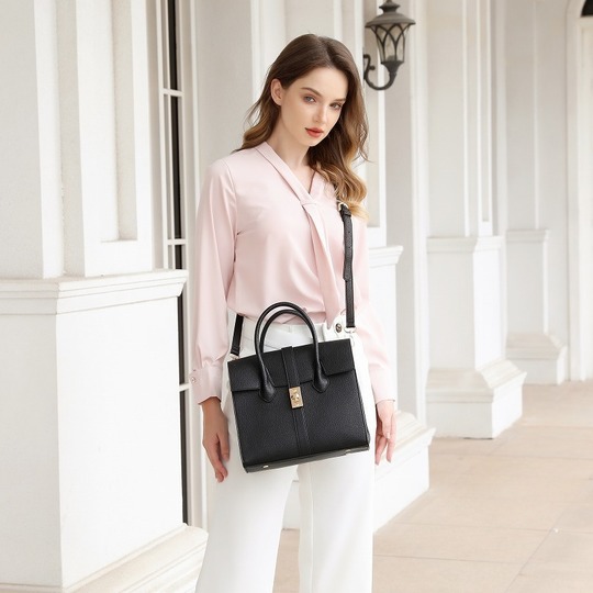フロントのゴールドキーが目を引く上品で女性らしいワンハンドルハンドバッグ。