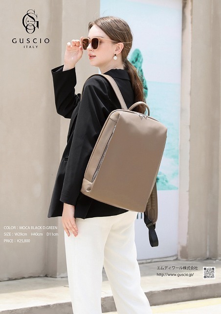 通勤時のビジネスファッションにはもちろん、休日のカジュアルなシーンにも馴染みやすいリュック。