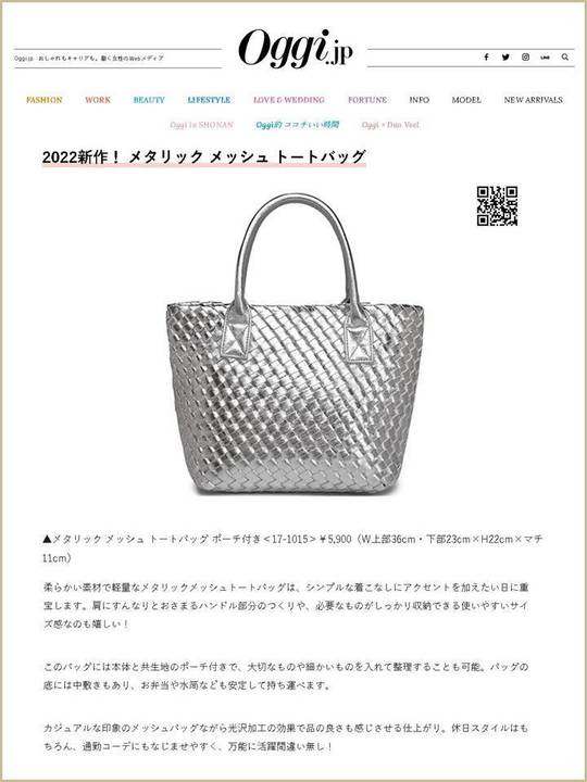 柔らかい素材のメタリックメッシュトートバッグ