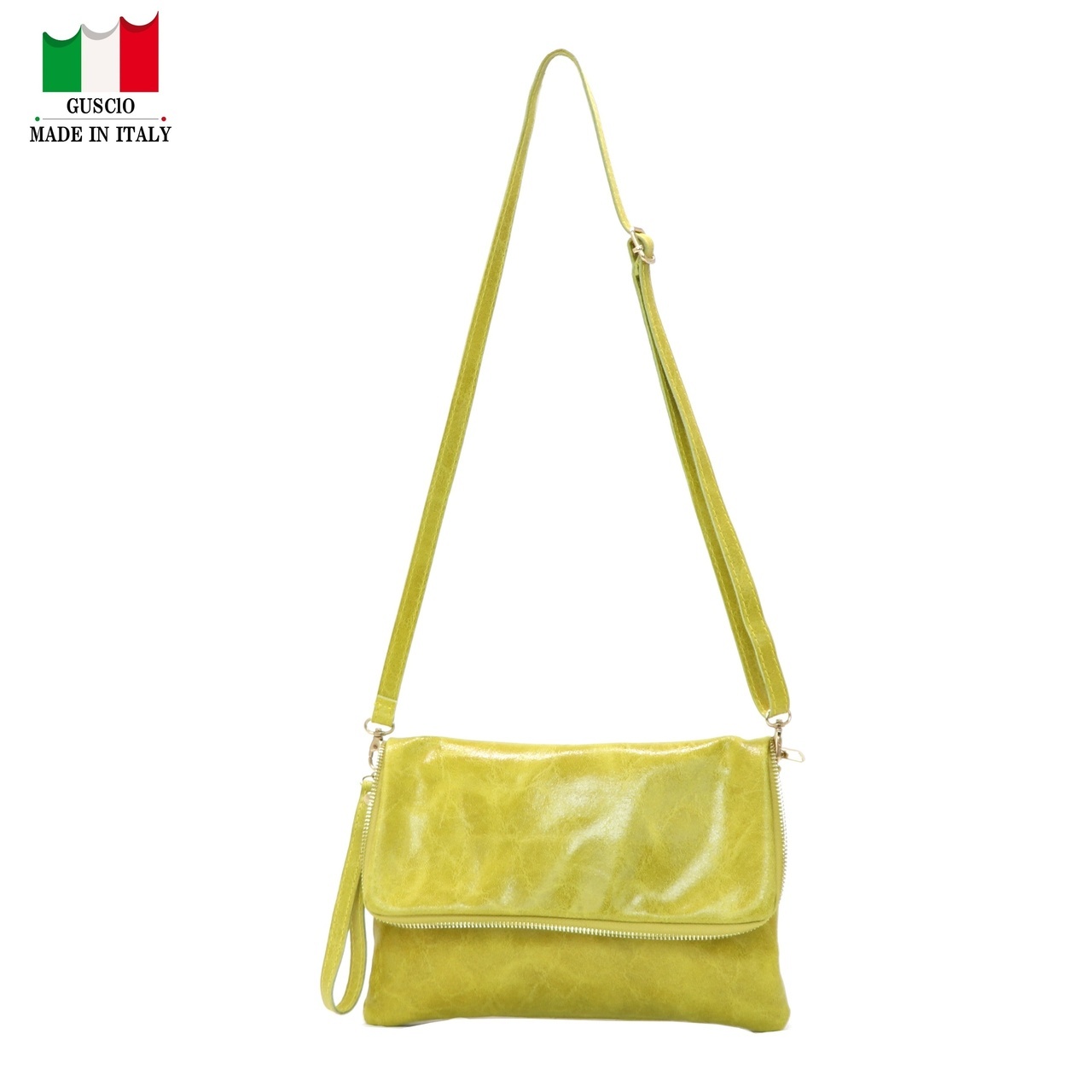 ストラップ付きイタリア製本革ショルダーバッグ